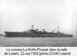 Sorti avec 1a lère Escadre du 22 janvier au 15 février à l'époque des fêtes du Carnaval, le Lamotte-Picquet mouille au Golfe Juan avec le Duguay-Trouin qui rentre à Toulon le 11 pour partir en mission au Maroc. Ensuite, avec les contre-torpilleurs et torpilleurs, le Lamotte-Picquet effectue ses écoles à feu les ler et 2 mars. C’est probablement à partir de cette date que commence, sur des affûts doubles, l’installation de ses mitrailleuses de D.C.A.