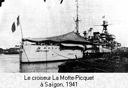Le 17 juin, alors que la catastrophe nationale est pratiquement consommée et que Paris est déjà aux mains des allemands, le Lamotte-Picquet, venant de Saïgon, mouille en baie d'Along. Le lendemain l'amiral Decoux à bord de l'hydravion du croiseur se rend à Hanoï pour y rencontrer le Général Catroux, Gouverneur Général. Il est de retour le jour même et rentre le 22 juin à Saïgon avec le Lamotte-Picquet.