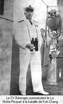 Peu après Koh-Chang, promotion. amplement méritée, le capitaine de vaisseau Bérenger est nommé contre-amiral le 26 mars. Il devient Commandant de la Marine le ler mai à la place de l'amiral Terraux atteint par la limite d'âge. Il a pour successeur sur le Lamotte-Picquet le capitaine de vaisseau Commentry (A.J.B.) qui, nommé par un décret du 6 avril, prend vraisemblablement aussi ses fonctions le ler mai.